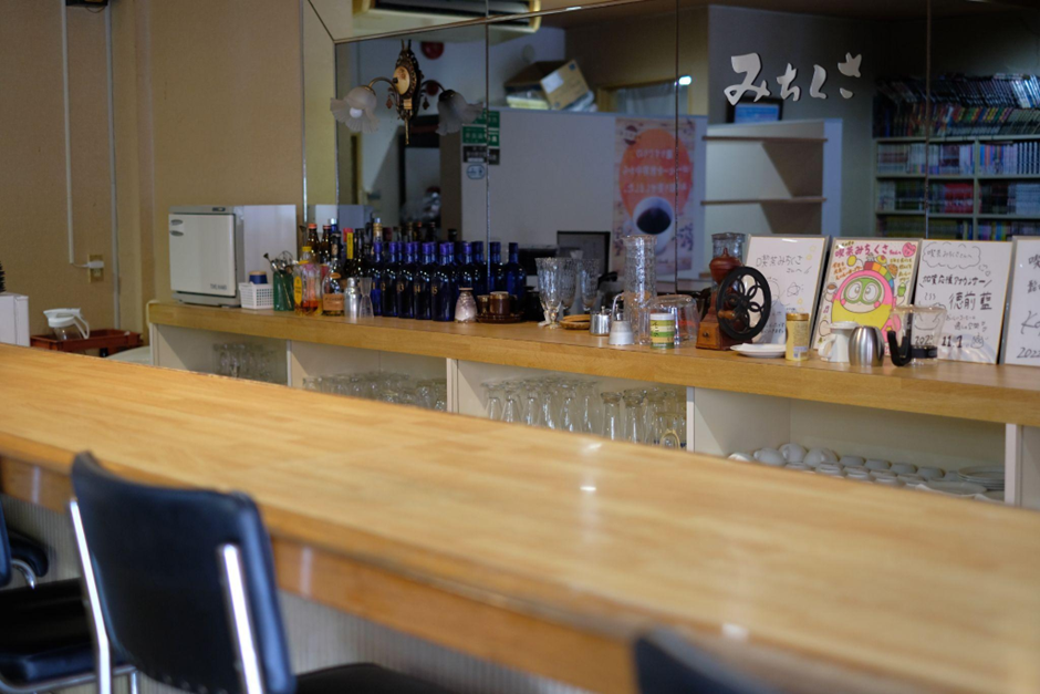 鏡の先に少し映っていますが、たくさんの漫画が置かれているので、つい長居をしてしまいそうです。(懐かしい漫画がたくさんありました)普段はこのカウンター前でマスターがコーヒーを淹れているそうです。
