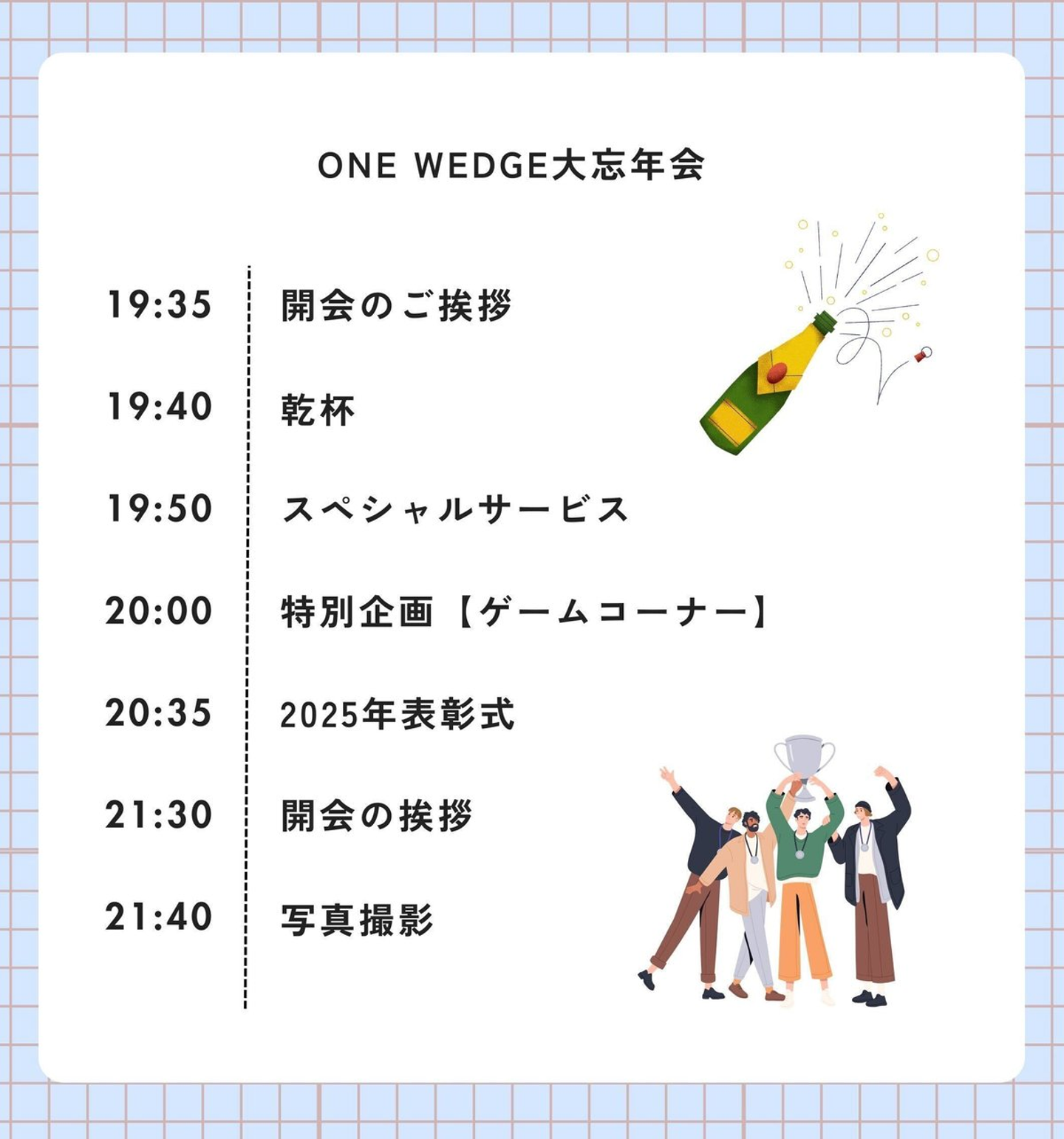 今回は、2025年 ONE WEDGE大忘年会の様子をお届けします💌