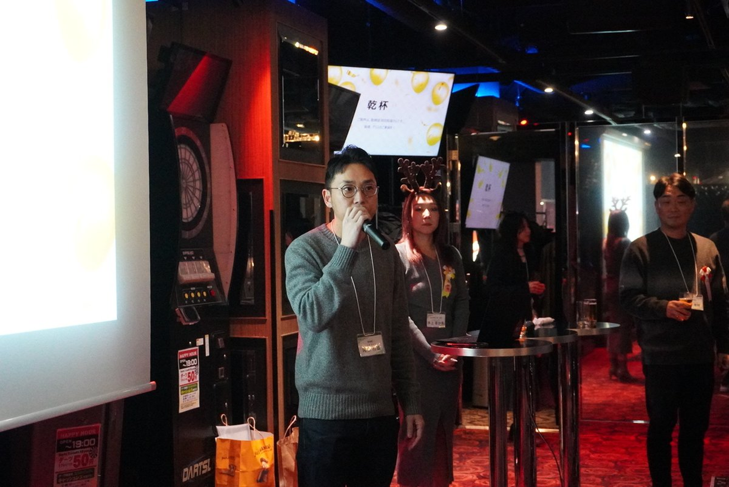 代表からの挨拶のあとは、今年から社外取締役に就任した岡田さんによる乾杯の音頭で、忘年会がスタートしました☺️🍻