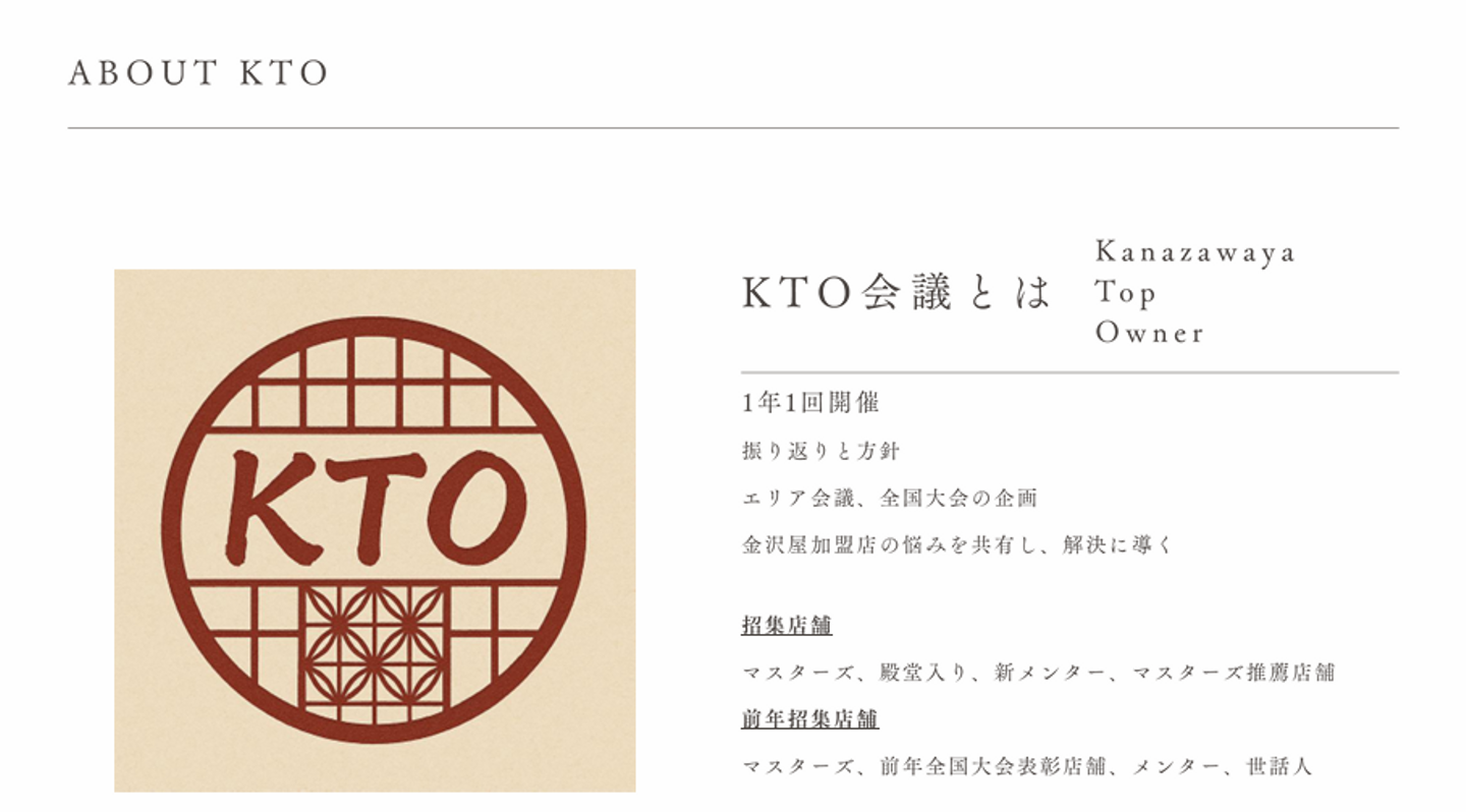 KTO会議 = K(金沢屋) T(トップ) O(オーナー)会議
