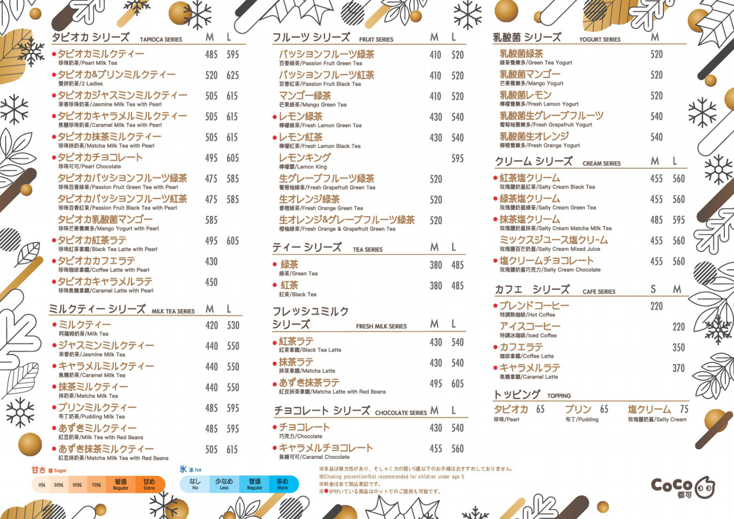 タピオカドリンク専門店の中でも、こんなにメニューが豊富なお店はほとんどないと思います・・・