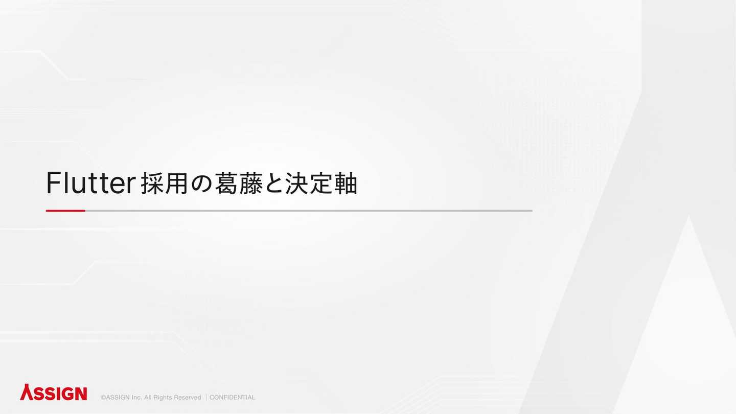 概要:弊社の白井からは、ASSIGNアプリにおけるFlutter採用の経緯と成果について発表しました。2021年の採用当初は開発者1名という組織制約の中、Flutterコミュニティの成熟度が後押しとなり導入を決定しました。2025年現在は、Flutterのパフォーマンス向上とUI/UXの信頼性の高さから積極的にFlutter採用を続けており、今後はアーキテクチャ改善、パッケージ最新化、AI活用を通じて、より強固なキャリアプラットフォームの構築を目指していく旨を発表しました。