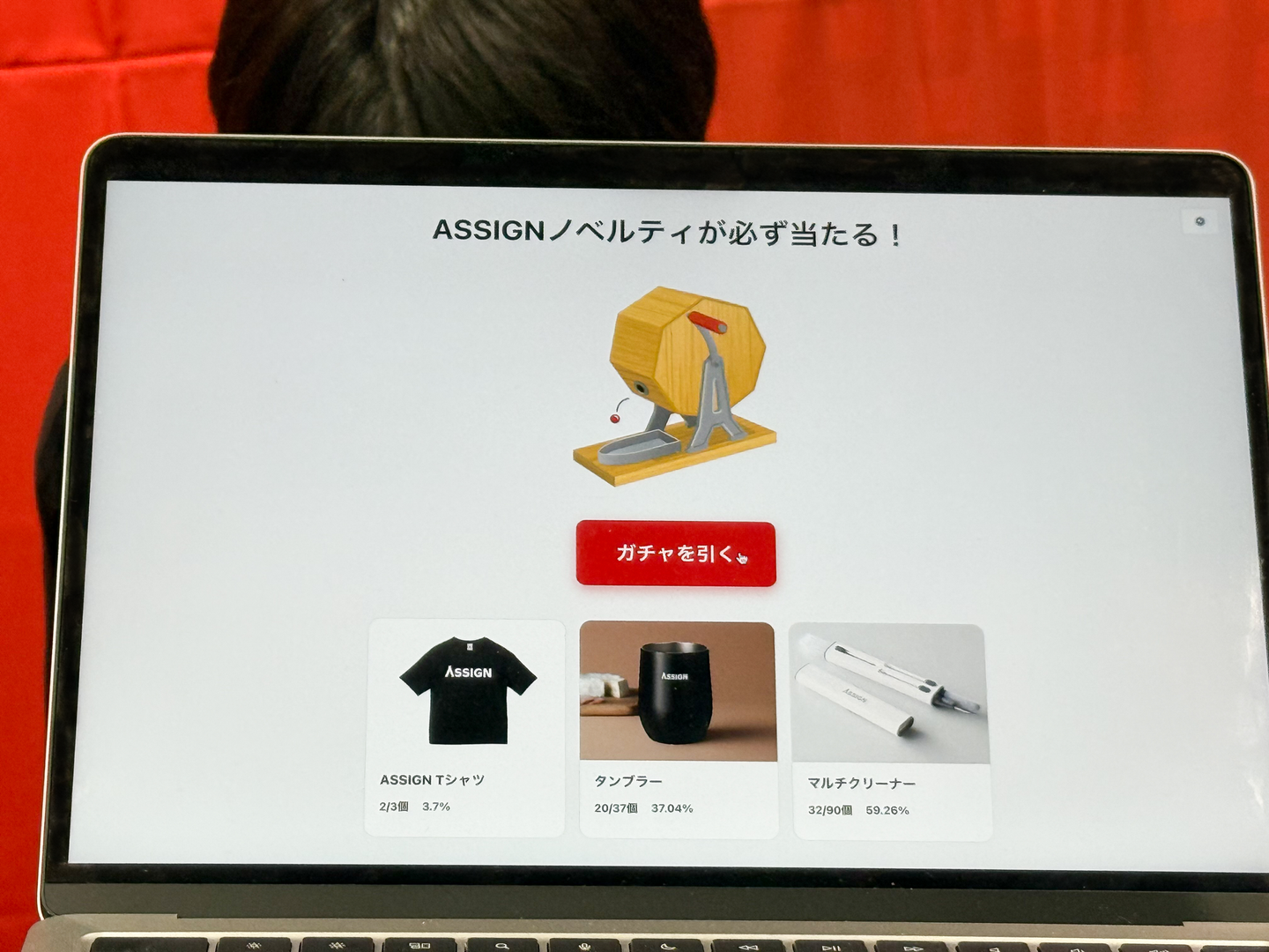 以下の写真は当日利用したノベルティガチャです。デザインシステム(整備中)を活用し、Vibe Codingでも簡単に当社プロダクトライクなUIを作ることができました。