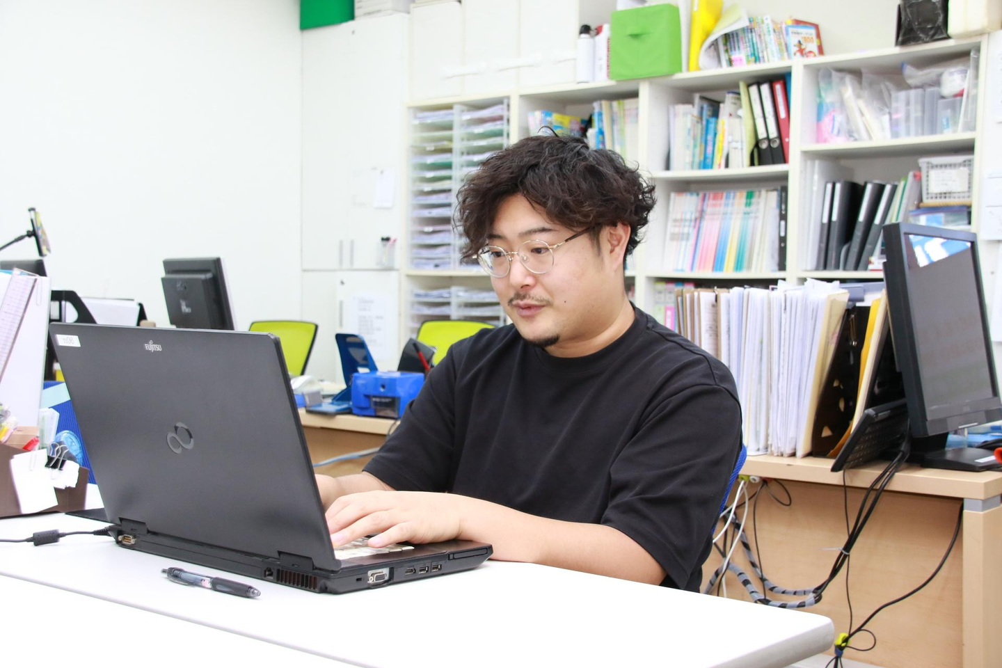 現在、習志野校に勤務する菊地拓海さんは児童発達管理者として主に児童の支援計画を立案や保護者とのモニタリング等を担当している。