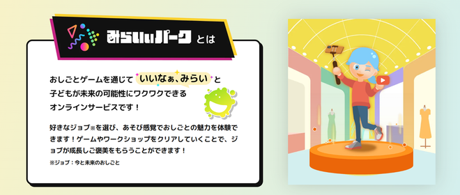 みらいいアカデミア、みらいいパークは、今までの職業体験施設では実現できなかった、オンラインでの教育施設、テーマパークです。実際に企業が直面している課題を子供たちと一緒に解決していくことで、本来の職業体験や、子供の行動変容を見届けることができます。