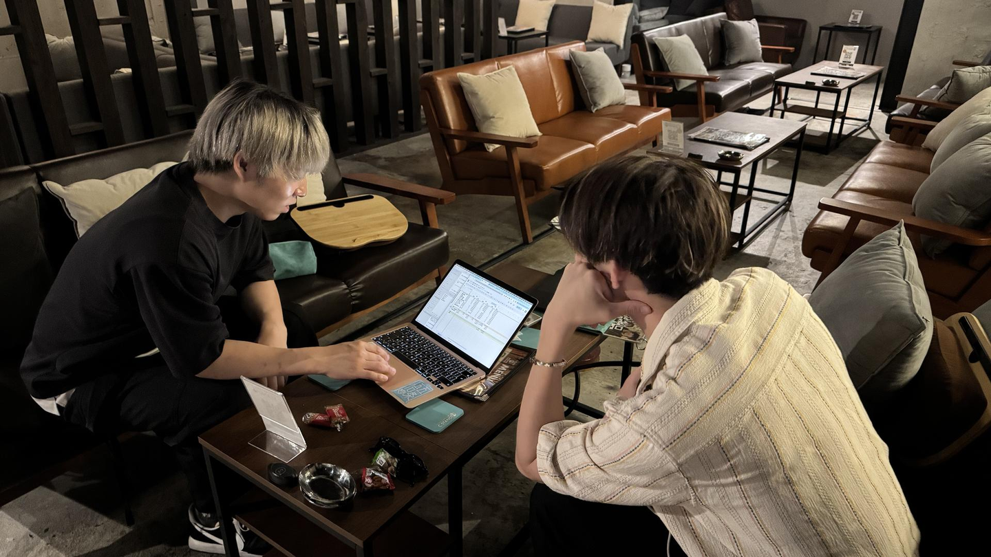 基本的には事務所に出社して作業することが多いですが、カフェやシーシャなど、違う場所で作業することもでき、結構柔軟です。ただ僕の印象としては、成果を忠実に評価してくれる会社なので、成果をなかなか出せない場合は、事務所で仕事ができる人に聞いて成長するのが早いと思います。