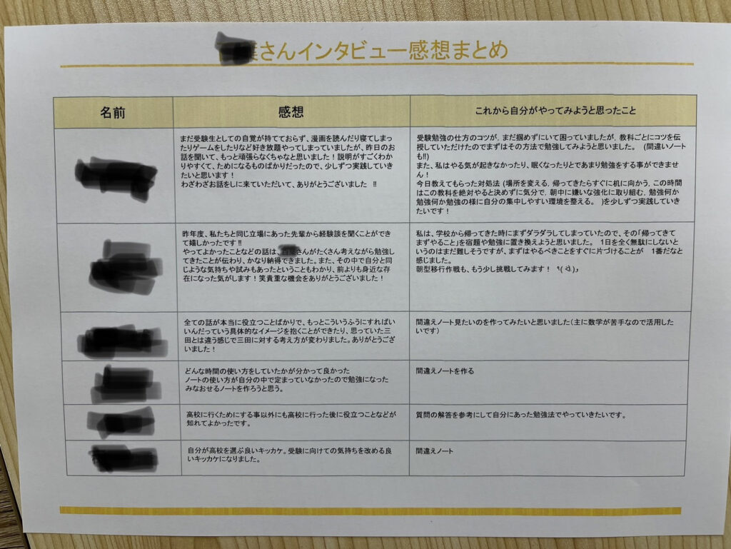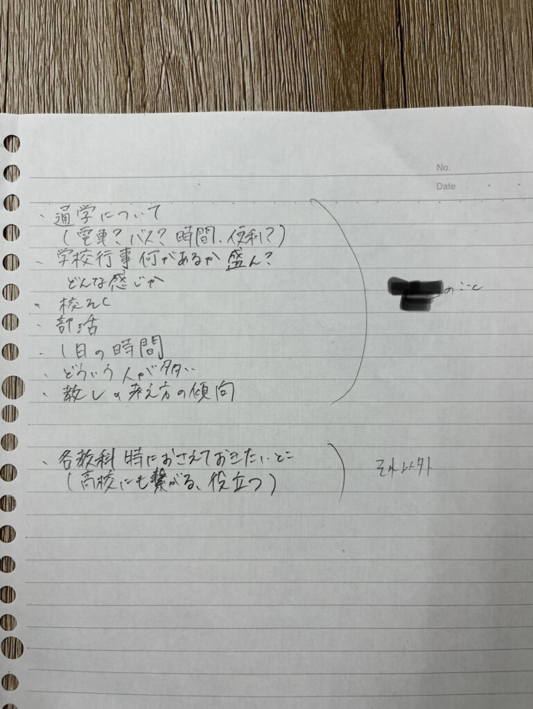 中学三年生の子には事前に先輩に聞きたいことを考えておいてもらいました。それに対して一つひとつ丁寧に、かつ現役でその高校に通っているならではのリアルなことを話してくれていたと思います。