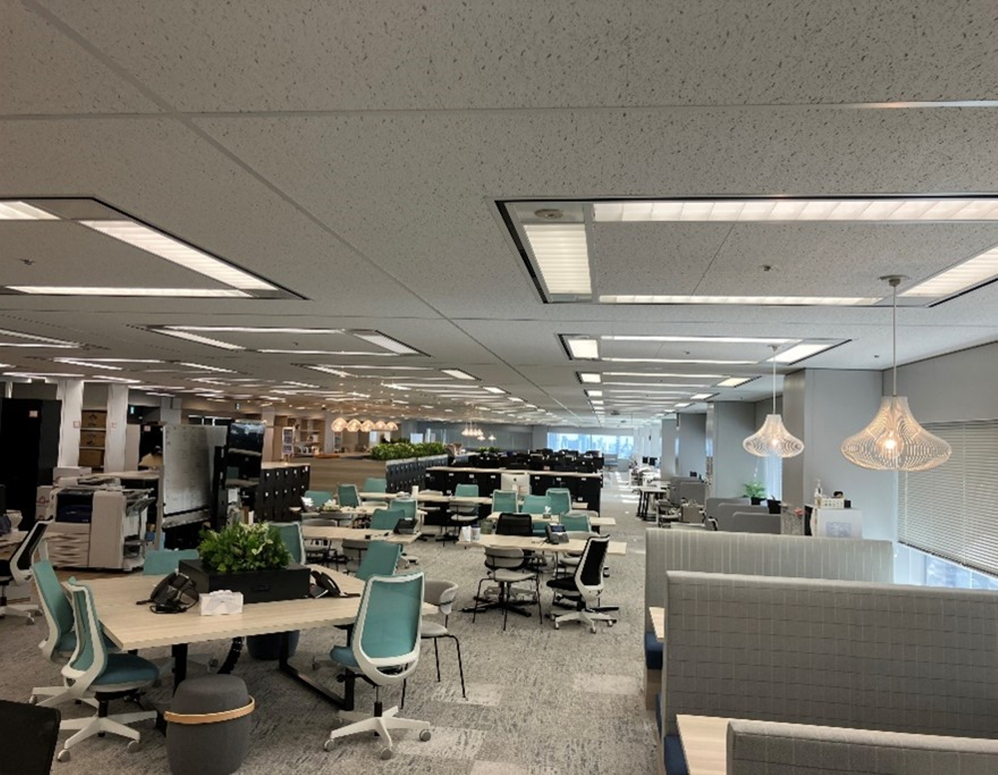 ですが、今回のレイアウト変更によって開放的なワンフロアのオフィスとなり