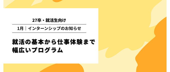 27卒・大学3年生向け|1月インターンシップ@就活の基本から仕事体験まで幅広いプログラムで開催!