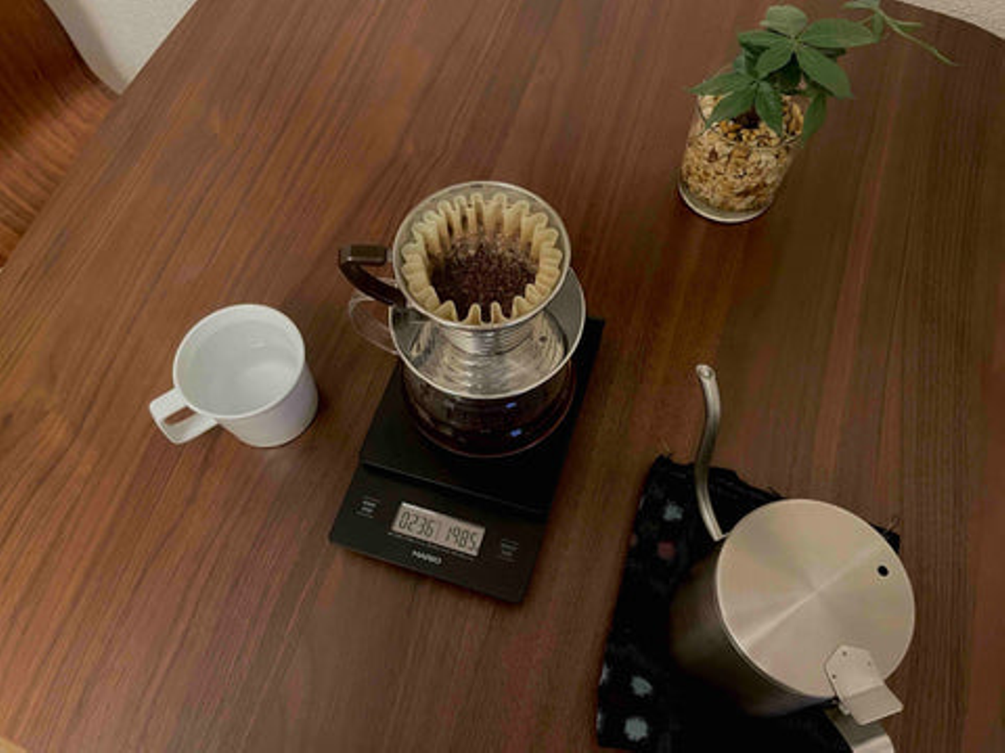 使用している器具は実家にあるものだそう。本当にコーヒー好きな一家なんだな。。ドリッパーはHarioV60、サーバーはHarioV60レンジサーバー