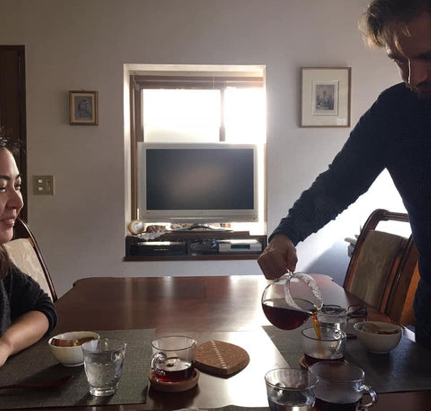兵庫県にあるAyaの実家での一枚。この日コーヒーを淹れているのはご主人。