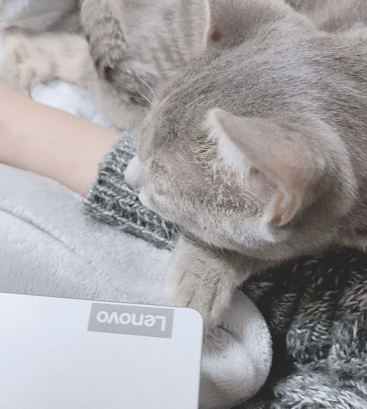 ▲当時の関連する写真がないので、作業している時に実家の猫に邪魔された写真です