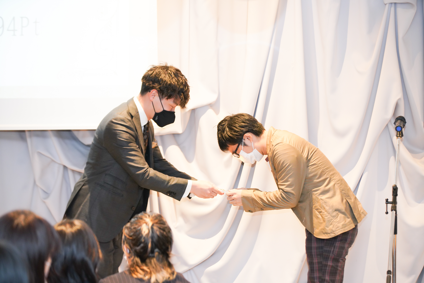 今回は前回の4月に開催された表彰式に引き続き、第二回目の開催となります。万全な感染予防対策のもと、オフライン開催ができたことを嬉しく思います。