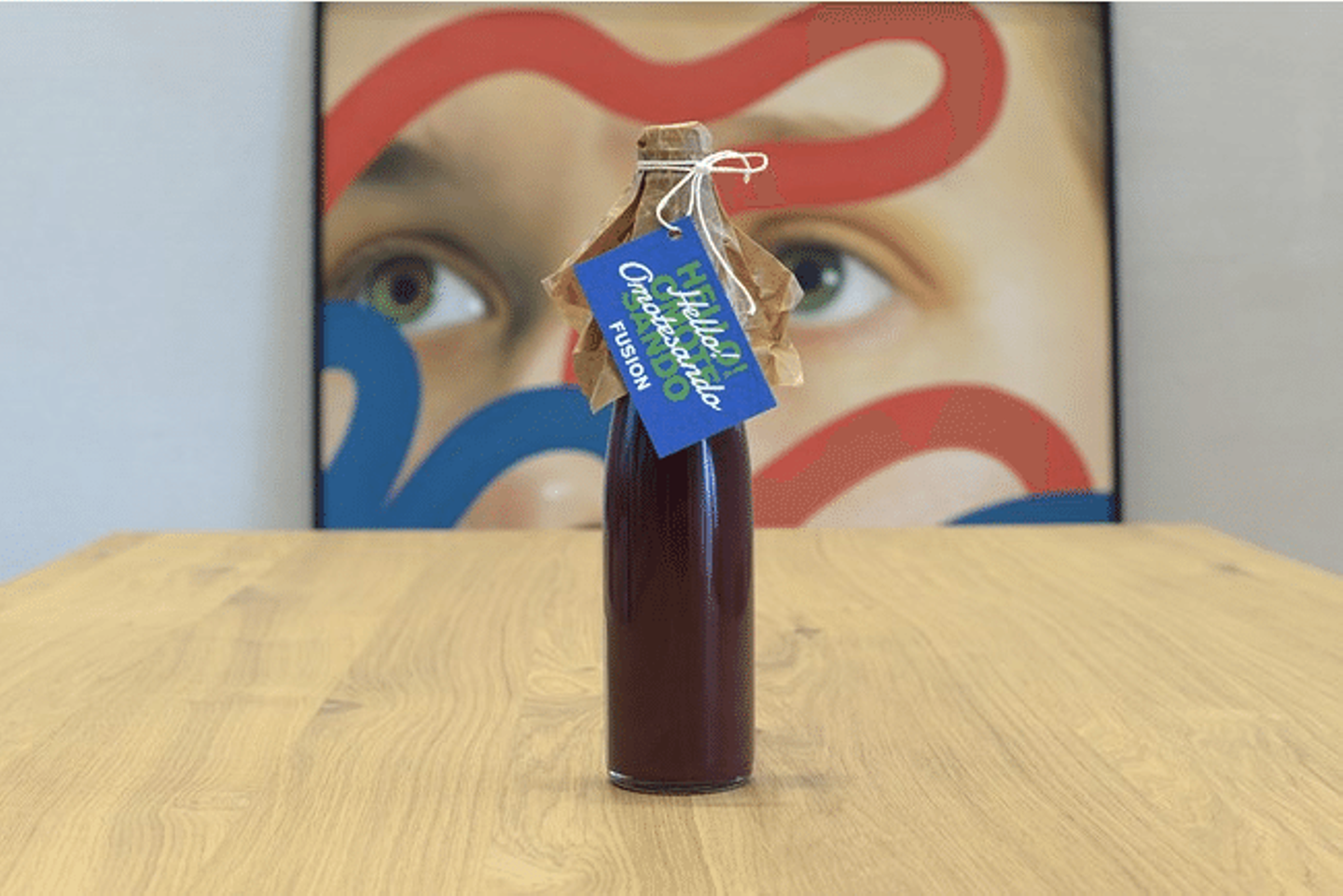 このジュースは、濾過や酒石の除去を行わず、ぶどう本来の旨味や風味、そして自然の奥深い味わいを楽しめる「スムージュ」と呼ばれるドリンクです。キャップの部分には、「Hello Omotesando」というメッセージをデザインした移転記念のクリエイティブが施されています。