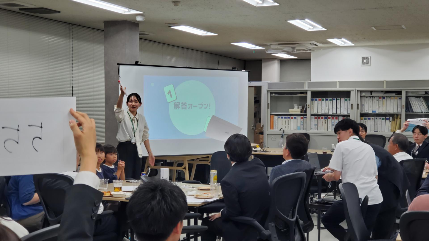 チーム対抗で「割合当てクイズ」や「お絵描き伝言ゲーム」を実施。