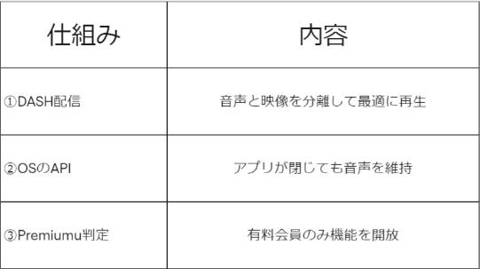 この値をもとに、アプリ側が「このユーザーはPremium会員だから、バックグラウンド再生OK」と判断します