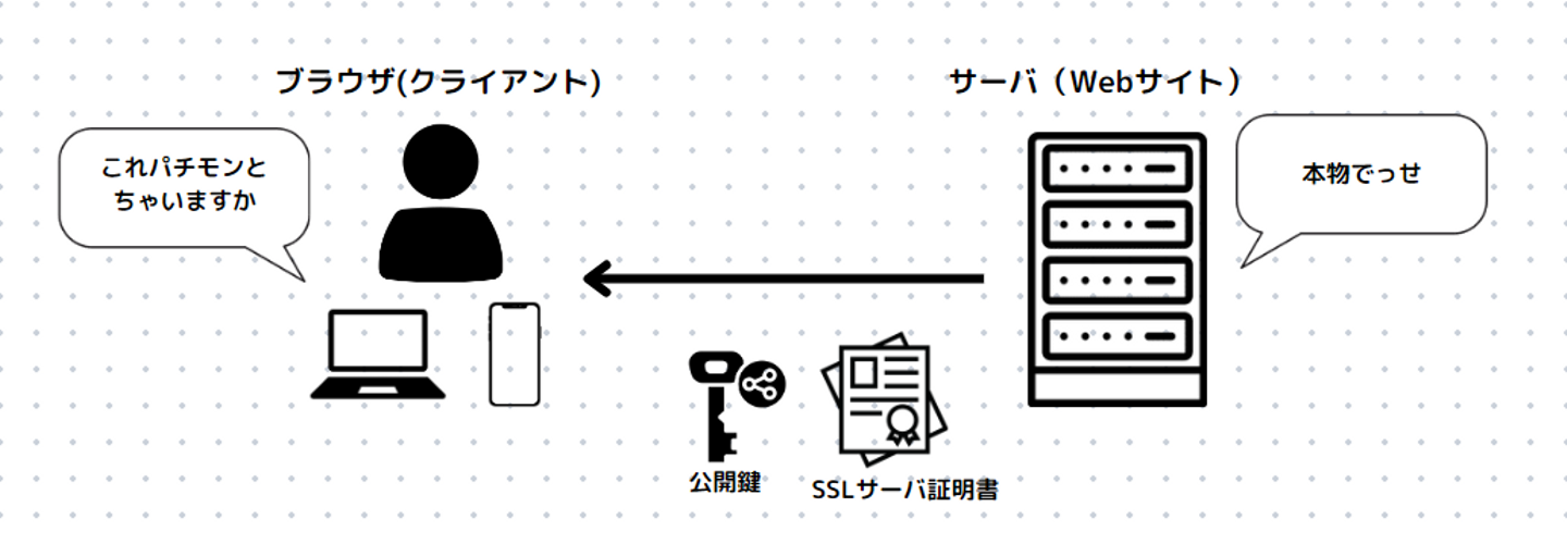 SSLサーバ証明書:信頼できる認証局(CA)が発行した「このサーバーは本物ですよ!」という証明書