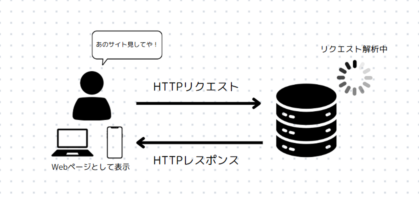 Webサイトを開くとき、WebブラウザとWebサーバーがこんなやりとりをしています👇