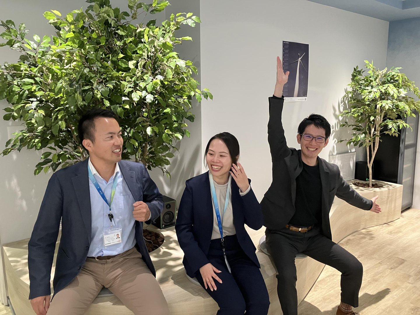 ↑今回部を代表してお話してくれた電力事業戦略部のメンバー!右に座っている方は、風車のポーズをしてくれています