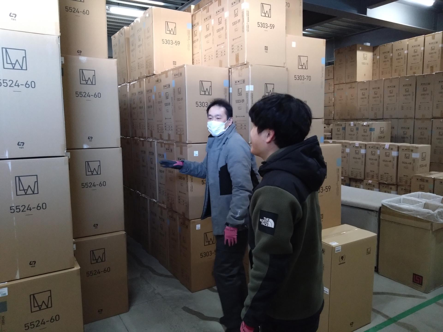 【倉庫作業研修を受けるNさんと、指導する倉庫責任者のKさん】📷
