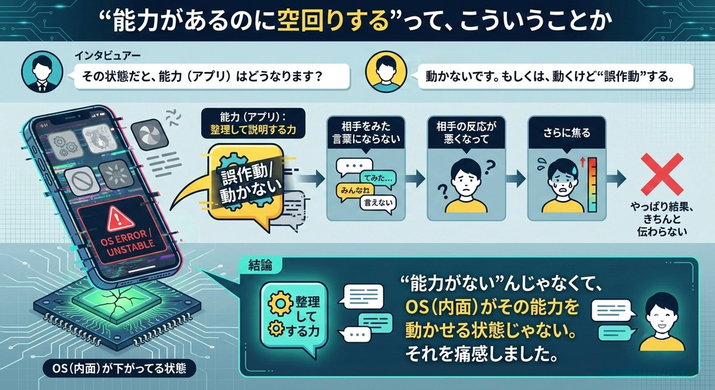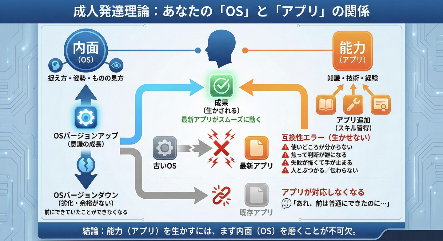 これって、アプリ(能力)だけ増やしてOS(内面)を放置してた状態なんです。