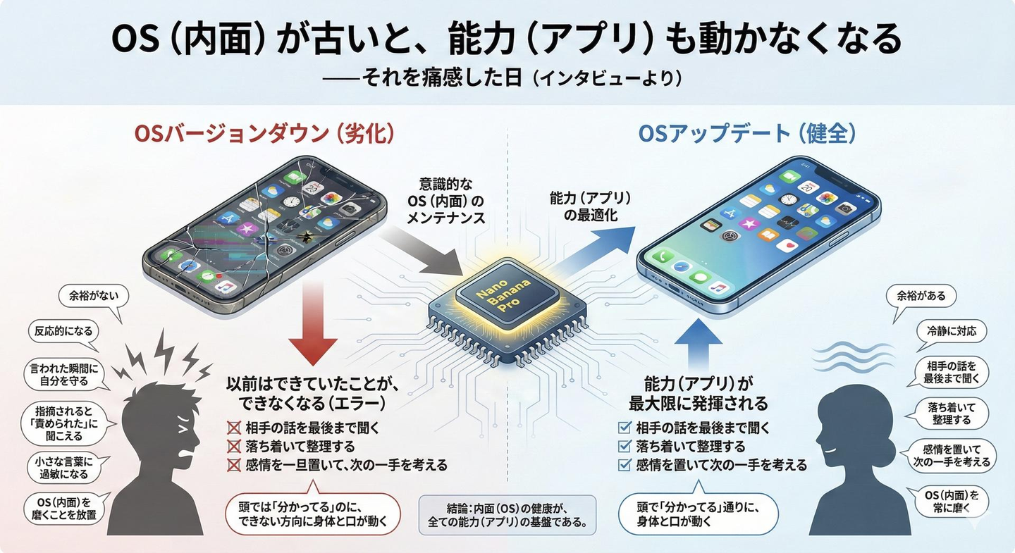 いや、正確には——OS(内面)を磨くことを放置してたから、劣化してたんだと思います。