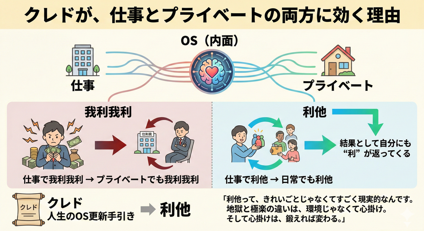 クレドとは、きれいごとじゃなくて、すごく現実的なもので、OS(内面)は仕事の時間だけ動いてるわけじゃありません。