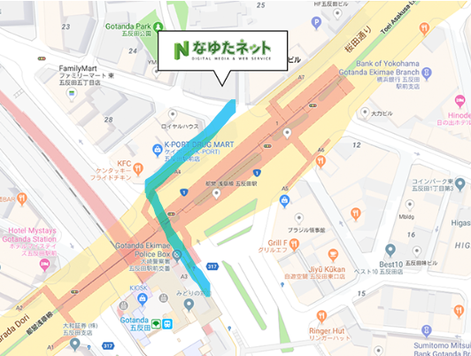 では、JR山手線五反田駅からオフィスまでをご案内します!