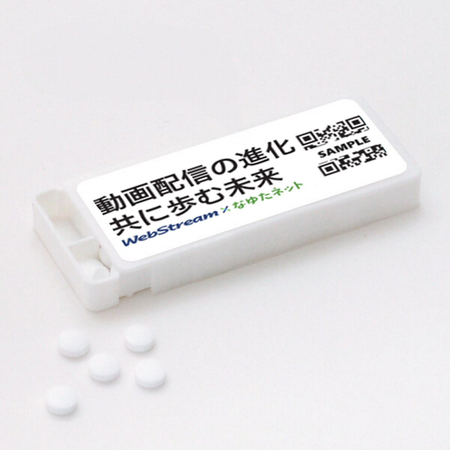 今年は紙のパンフレットは配布しませんが、その代わりにこちらのミントタブレットを配布いたします。QRコードを読み込んでいただくと、詳しい展示内容や会社紹介のwebサイトが表示される仕掛けになっています。
