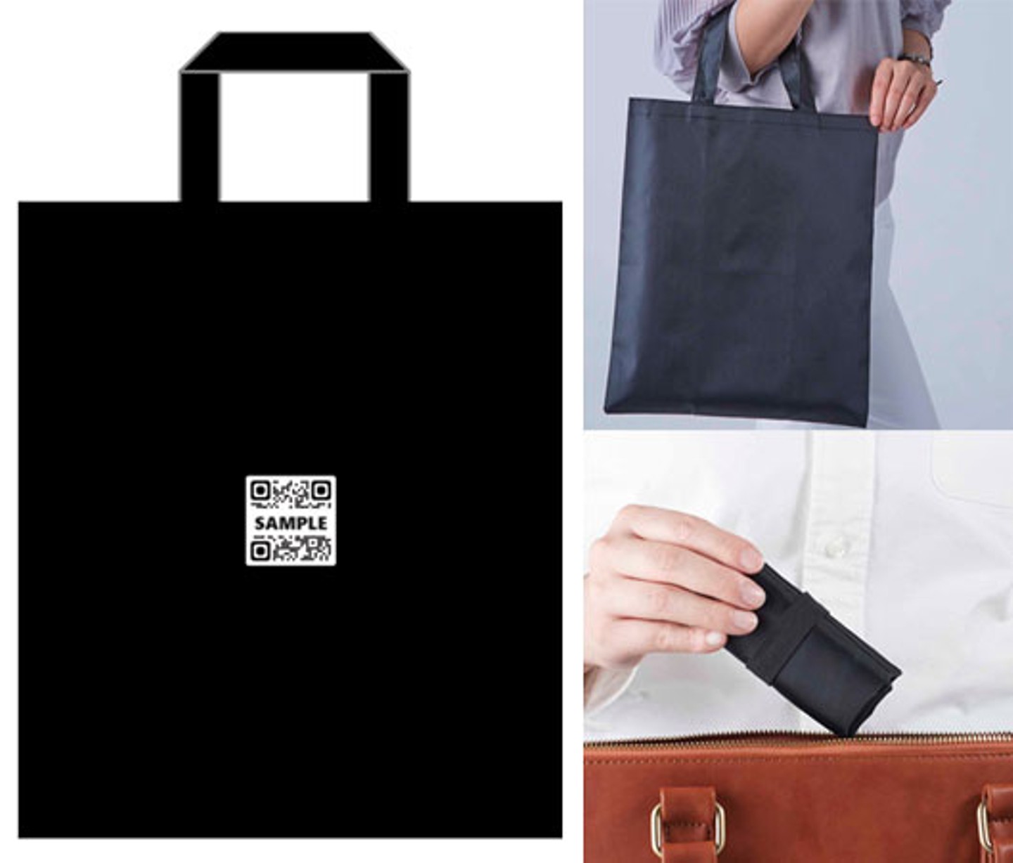 お買い物の時のエコバッグとして、お仕事の資料などを入れるサブバッグとして、お気軽にお使いください。