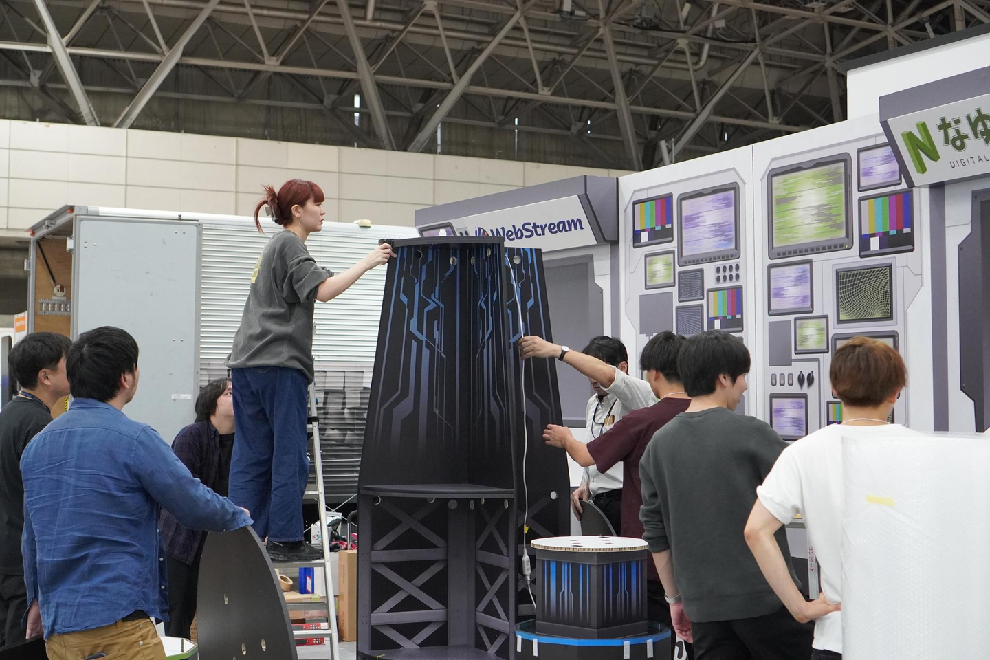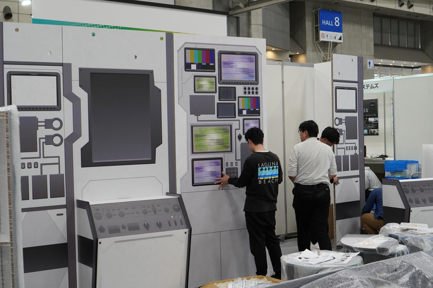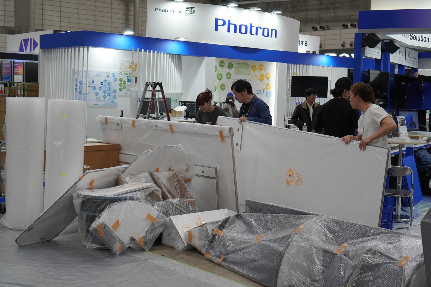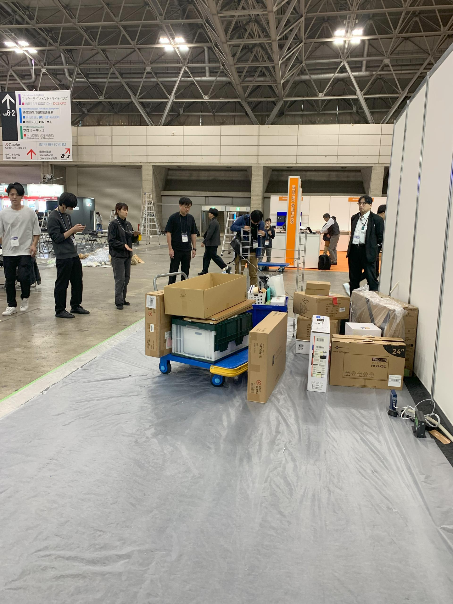 展示会に普段から出展されている方には設営の大変さに共感いただけると思います。参加者側の方には、「こんな風に設営が進むんだな」と、温かい目で見守っていただければ幸いです。