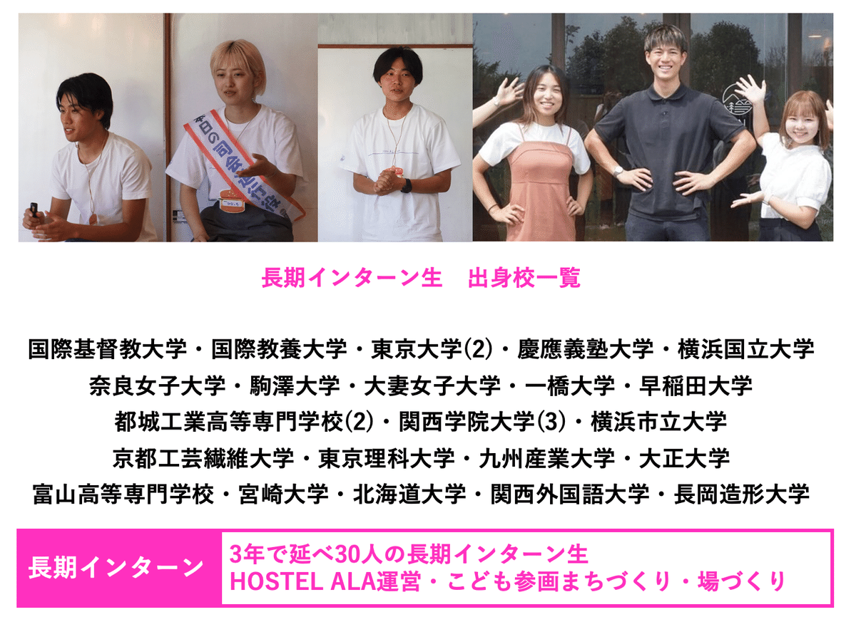 都心のインターンみたく、就活のためでもなく、ガクチカレベルでもなく、休学してまで長期にわたって来る学生たち。