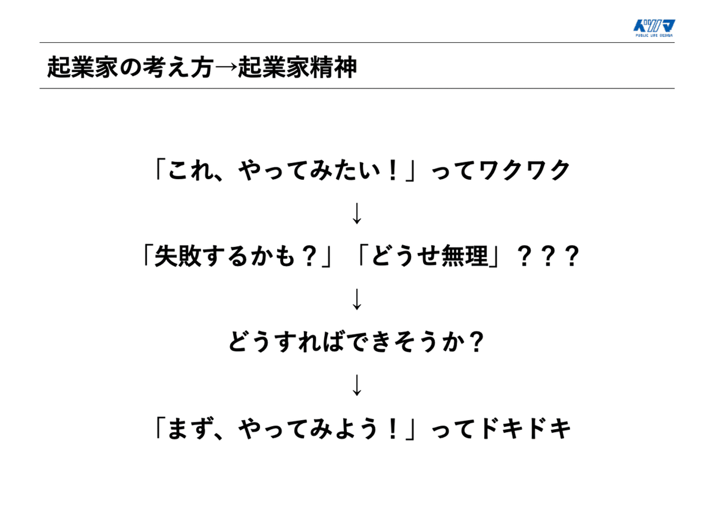 起業家精神を持って、興味あるまちづくり分野で、「やってみたい!」を見つけて、「どうすればできそうか?」考えて、「やってみよう!」に。