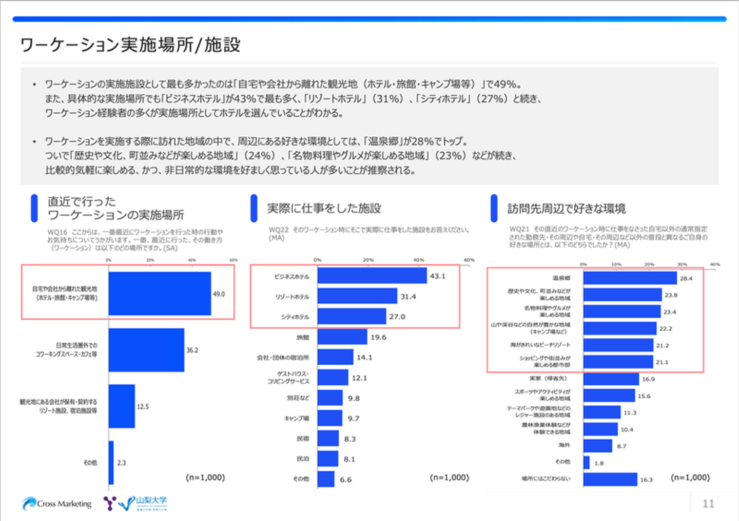 実施場所で一番多かったのは「自宅や会社から離れた観光地(ホテル・旅館・キャンプ場等)」で49%。