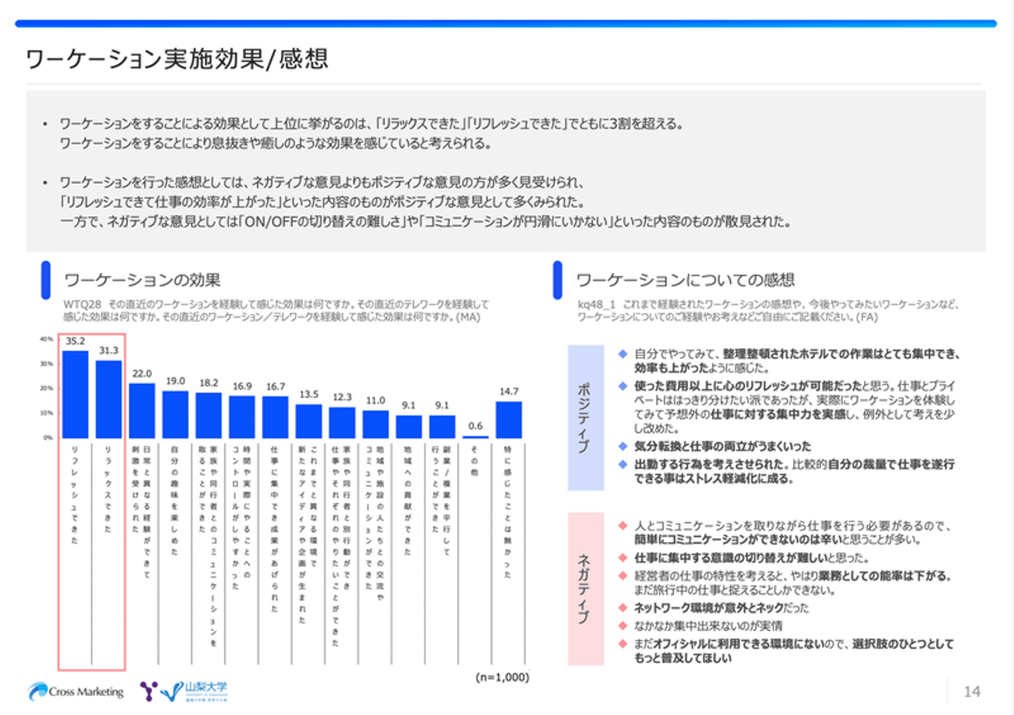 実施効果や感想を見ると「リラックス」「リフレッシュ」できたようで、気分転換と仕事の両立が大事ってことなんでしょう。