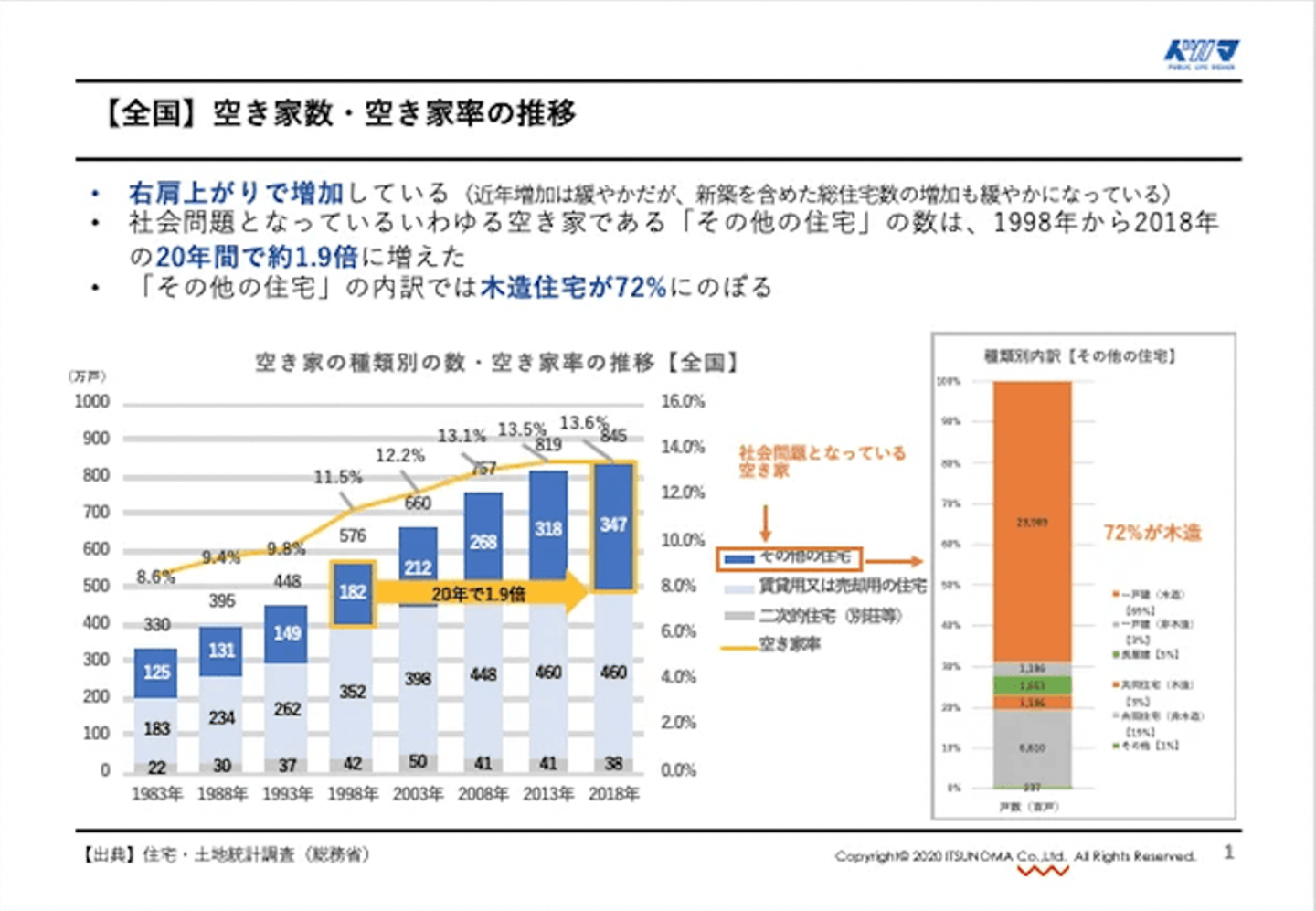 総務省の5年に1回の調査で、日本の空き家は846万戸。13.6%が空き家。
