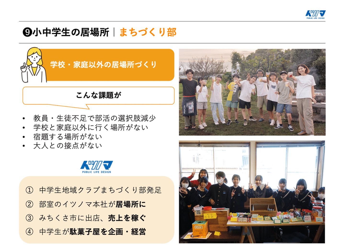 昨年末からは、中学生が経営する駄菓子屋「だがしやーど」を開店。