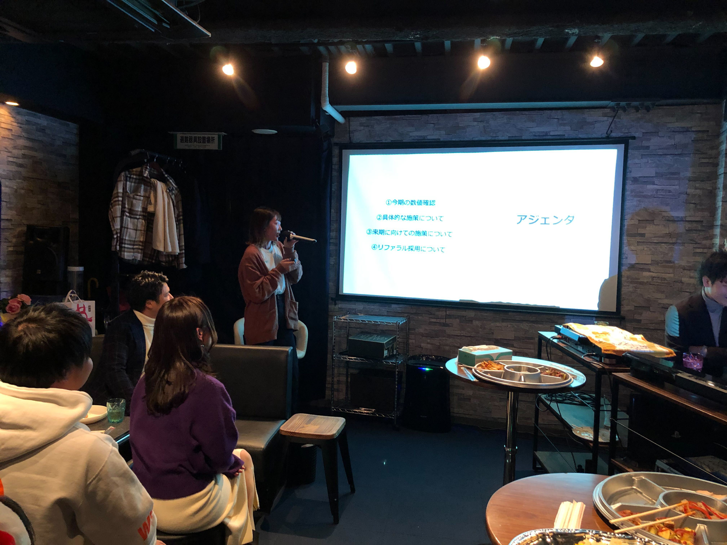 まず各部署の今期の振り返りをスライドを使って行いました。