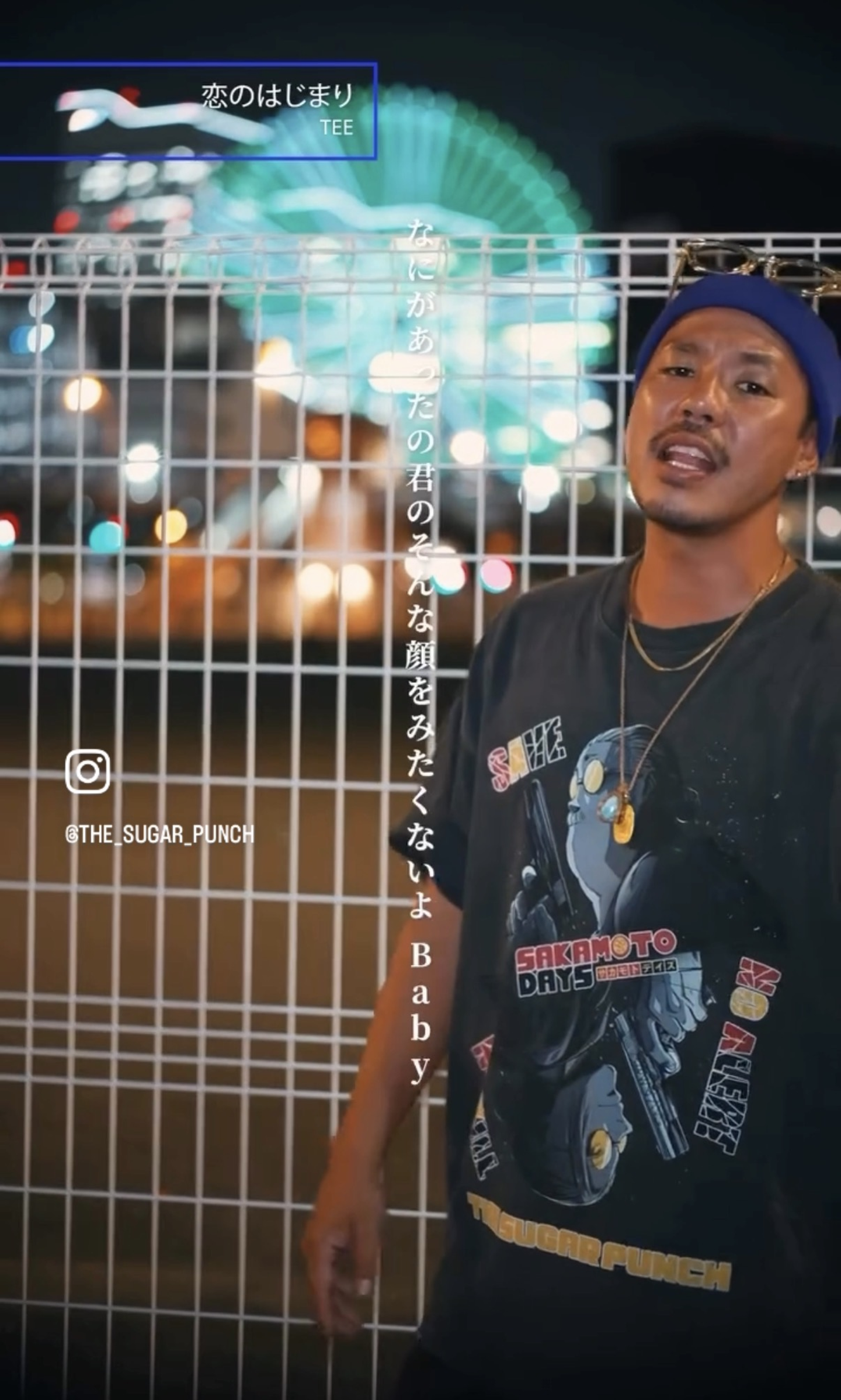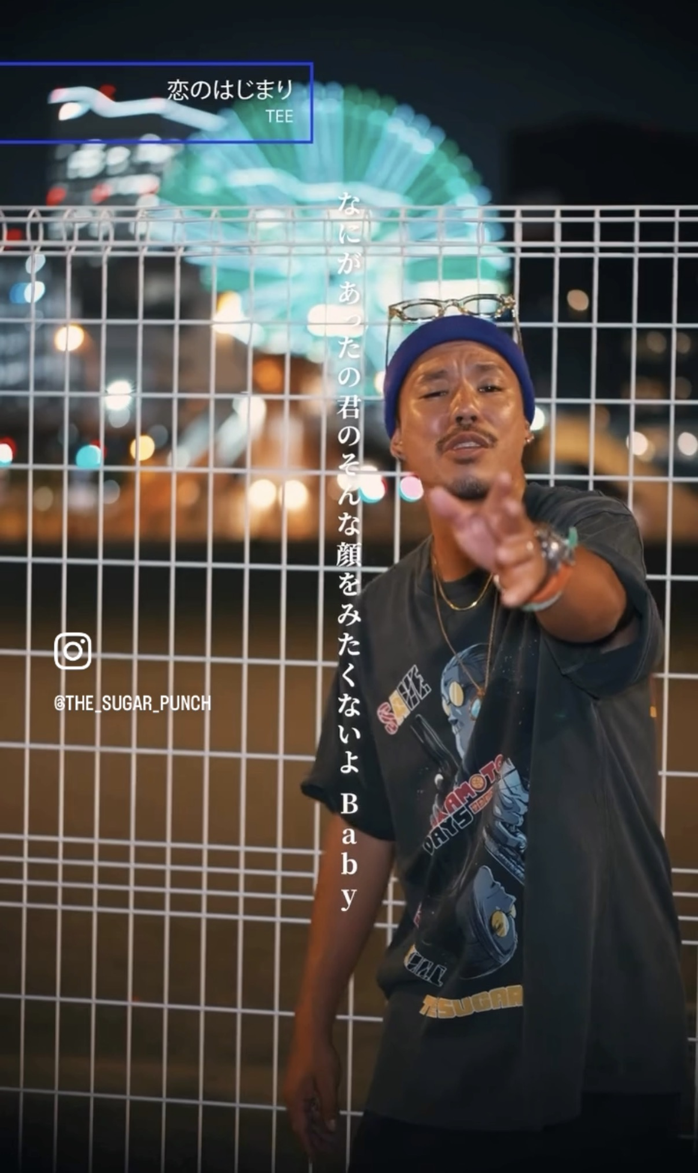 夜の街に映えるフェンスの前、音楽とともに響くのはTEEさんの歌声。
