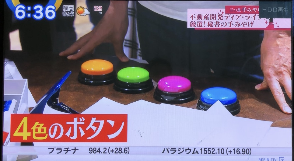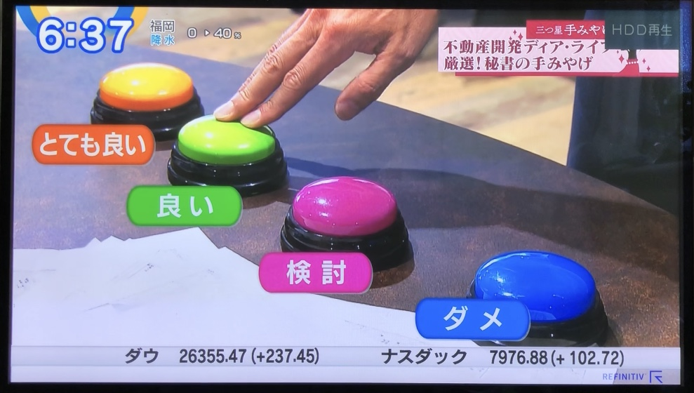 社長の手元には4色のボタンがあり、社長がそれぞれのボタンを押して評価しています。