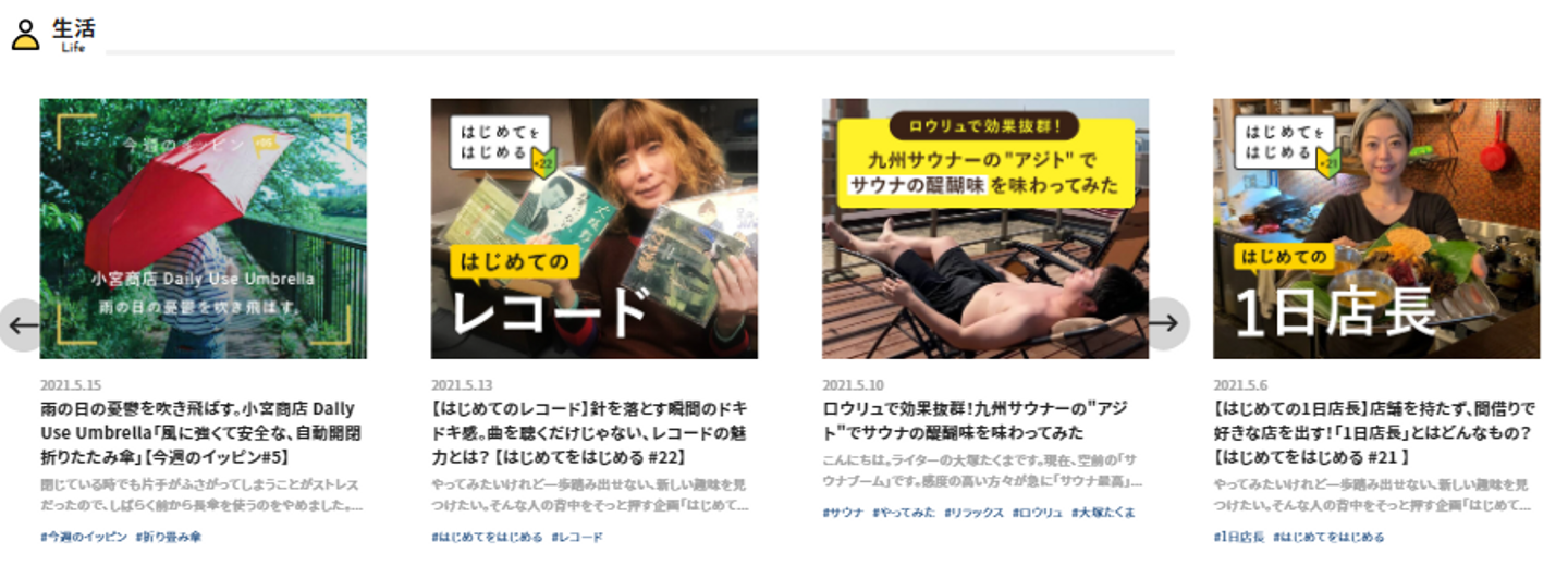 「こういうことをしている人がいるんだ」「こんなおもしろい世界や場所があるんだ」と興味や行動を起こすきっかけになる媒体作りをしているので、さまざまな人の「やってみたこと・やりたいこと」にまつわるストーリーやアイデア、あまり知られていない各方面の世界で活躍する方々のインタビュー、おもしろいスポット情報などをメインに配信しています。