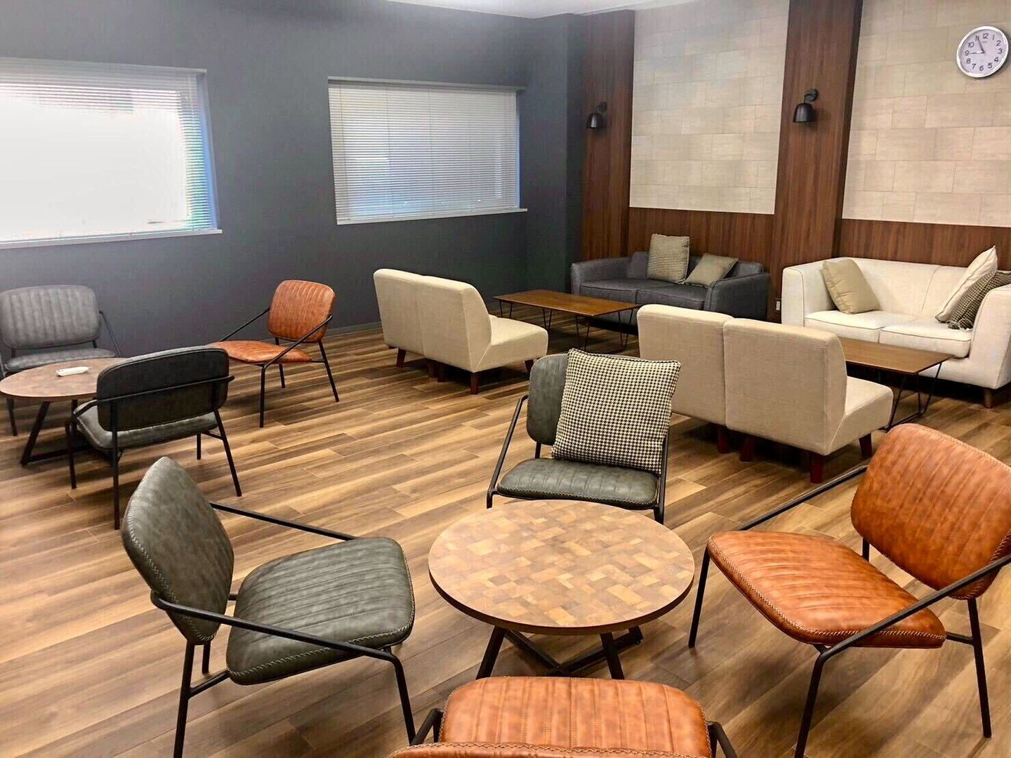 エントランスからドアを挟んですぐのフリースペースは、ソファーやデスクなどが設置してあり、