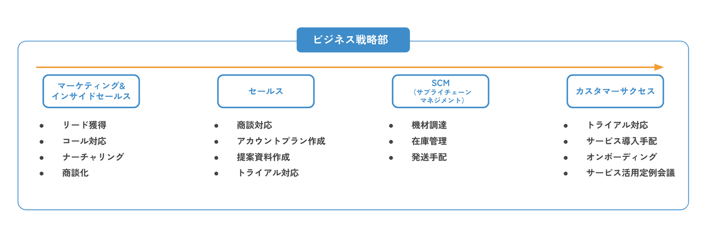タイムリープの営業体制は「ザ・モデル型」を採用していて、マーケティング・インサイドセールス、セールス、CSなどが連携しながら進める仕組みになっているため、他グループとの情報共有やコミュニケーションがとても重要です。