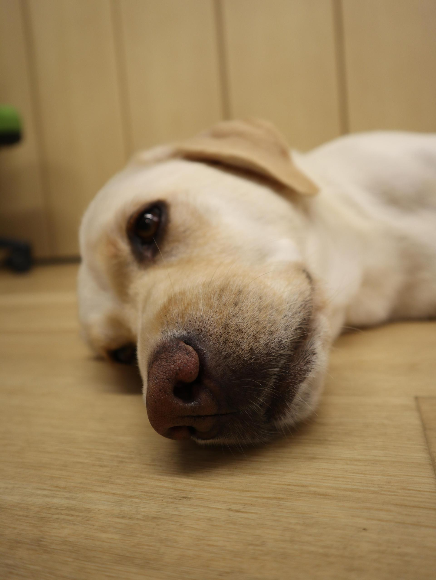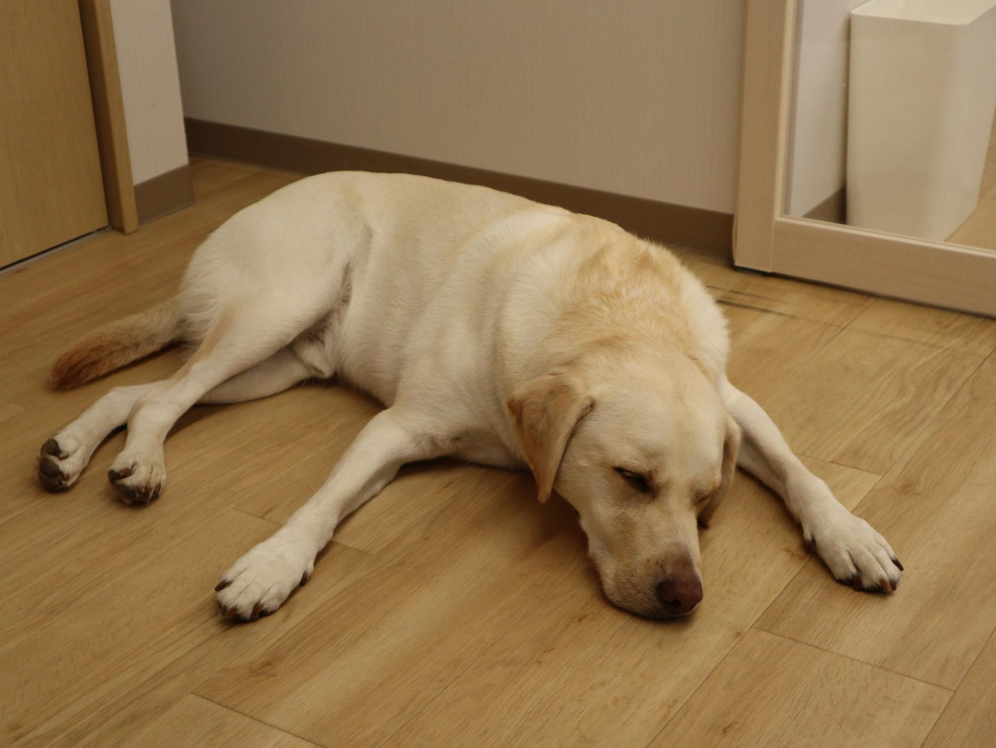 ドアを開けると、ゆっくりと顔を上げる2匹のわんちゃん。