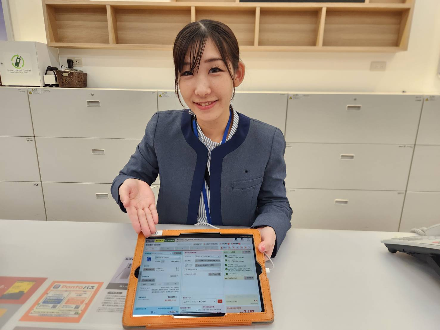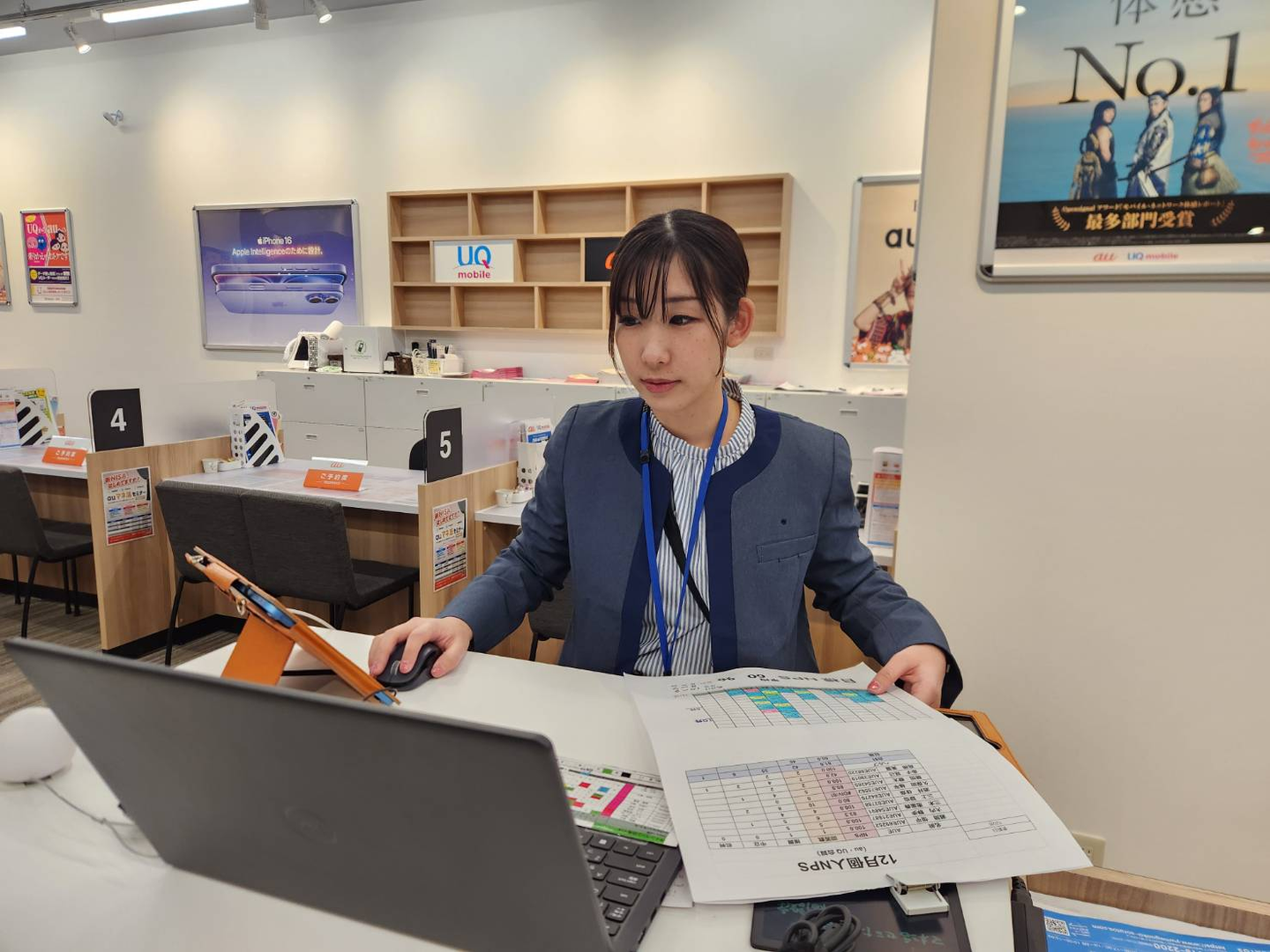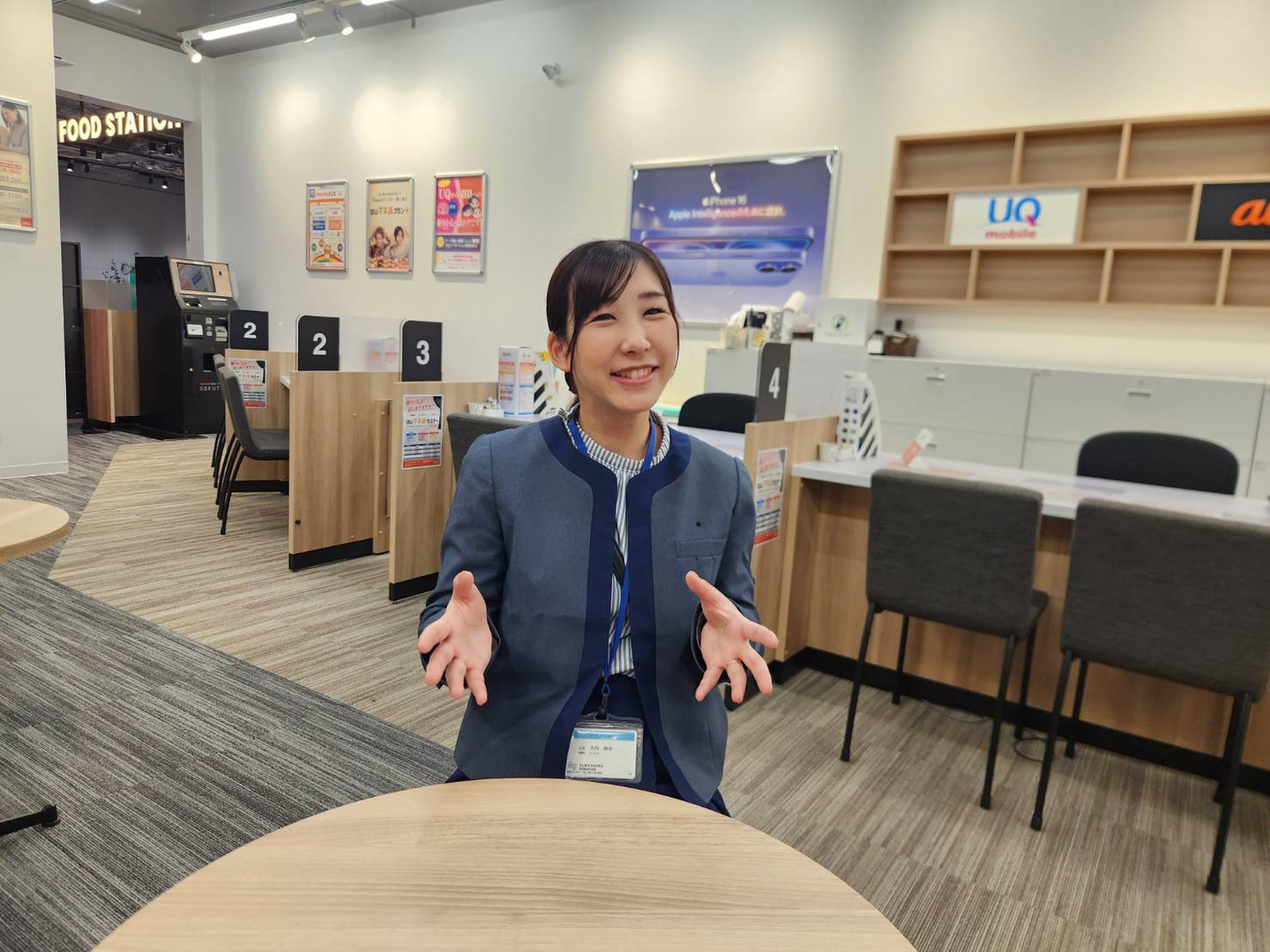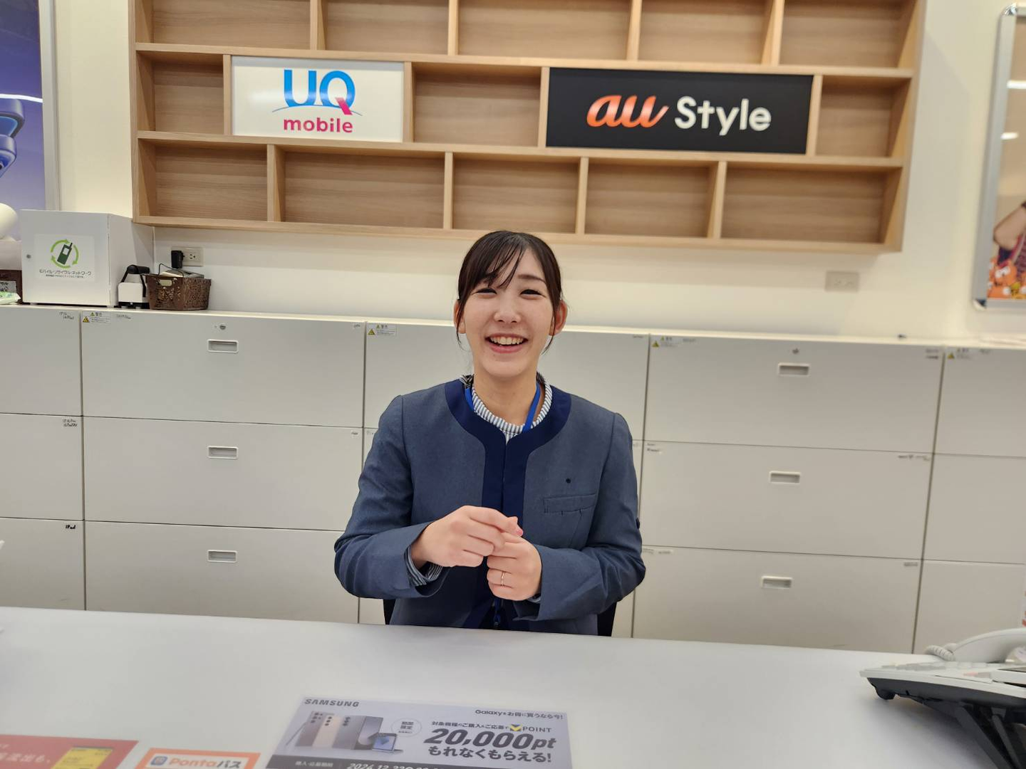 現在の仕事内容、また、働き方についてもお聞かせください!現在はauStyleゆめが丘お客様対応やスタッフのソラトスで副店長として働いています。