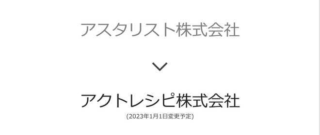 SaaSの連携によって業務の自動化を実現するエンタープライズiPaaS「ActRecipe」を提供するアスタリスト株式会社(本社:東京都港区、代表取締役CEO:池上大介、以下「アスタリスト」)は、アクトレシピ株式会社への商号変更を行うこととなりましたのでお知らせいたします。また、第三者割当増資による資金調達を完了しましたことを併せてお知らせいたします。商号変更の背景アスタリストは2013年11月創業し、日本における人口及び労働人口の減少を克服するために「個の力を活かす」ことを掲げ、いち早く在宅ワークを採用し、クラウドサービスの活用によって企業の生産性向上に寄与する取り組みをしてまいりまし...