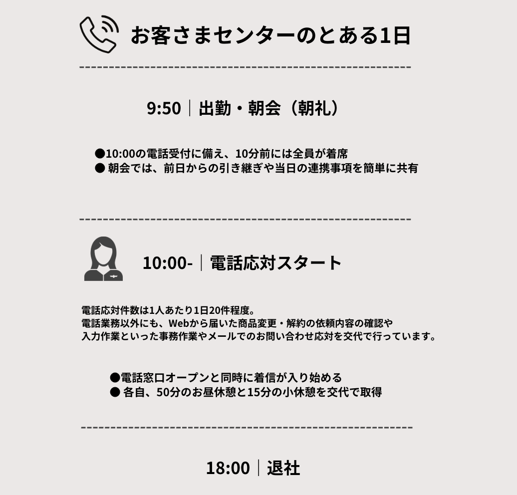 「マニュアル通りではなく、自分の言葉でお客さまに寄り添いたい方」や「お客さま応対を通じて誰かの役に立ちたい方」はぜひ最後までご覧ください。