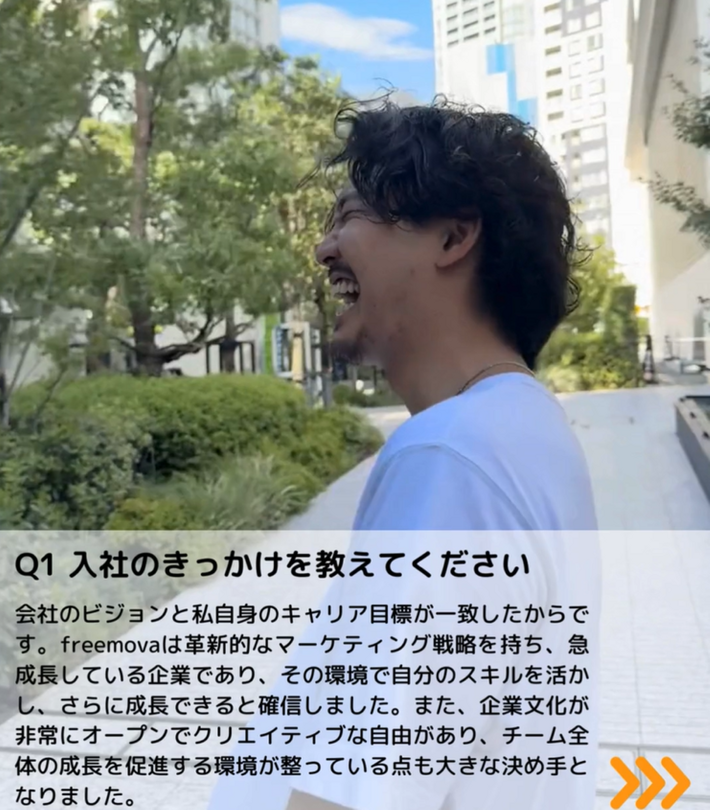 Q1:freemovaへの入社きっかけと決めてを教えてください