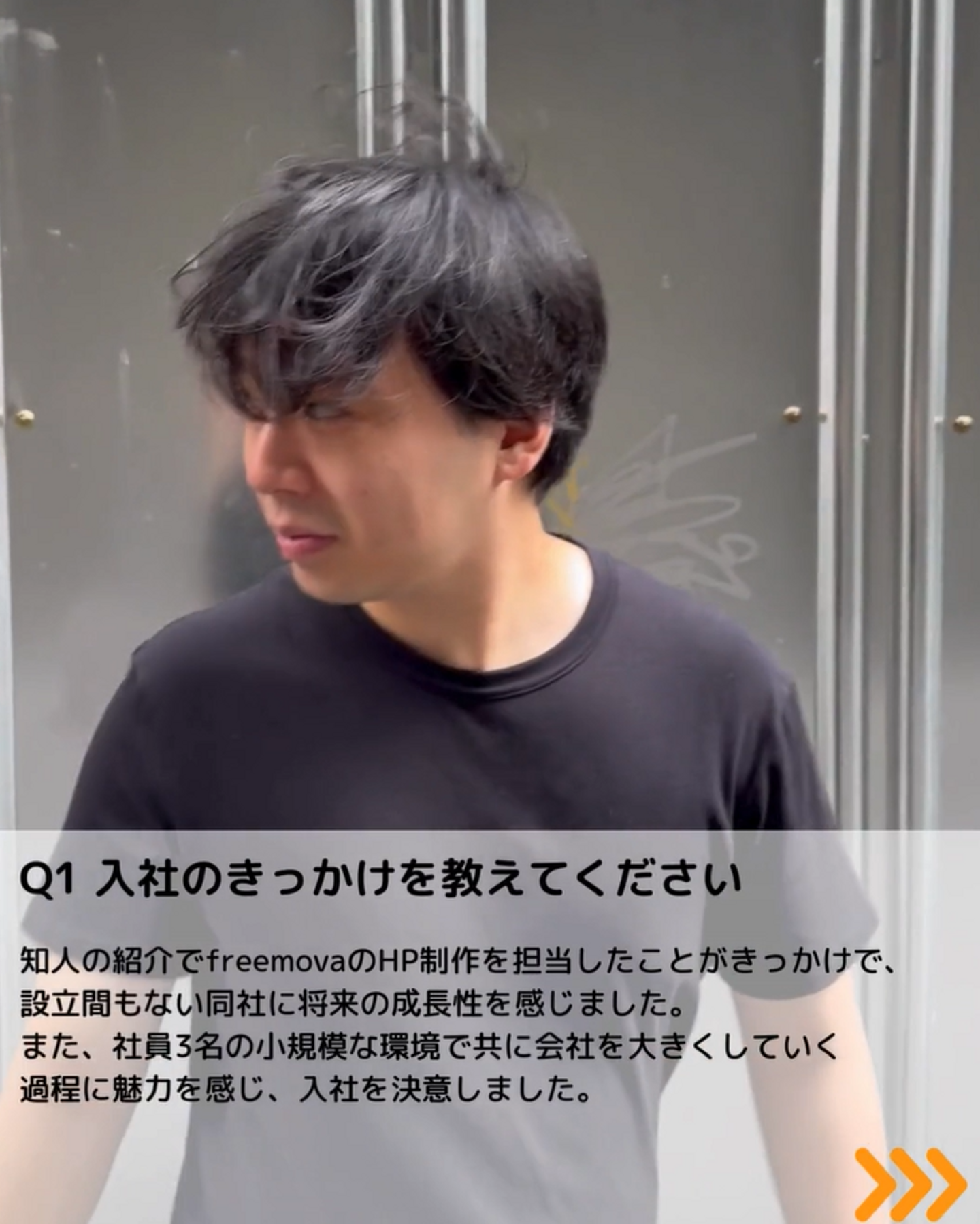 Q1:freemovaへの入社きっかけと決めてを教えてください