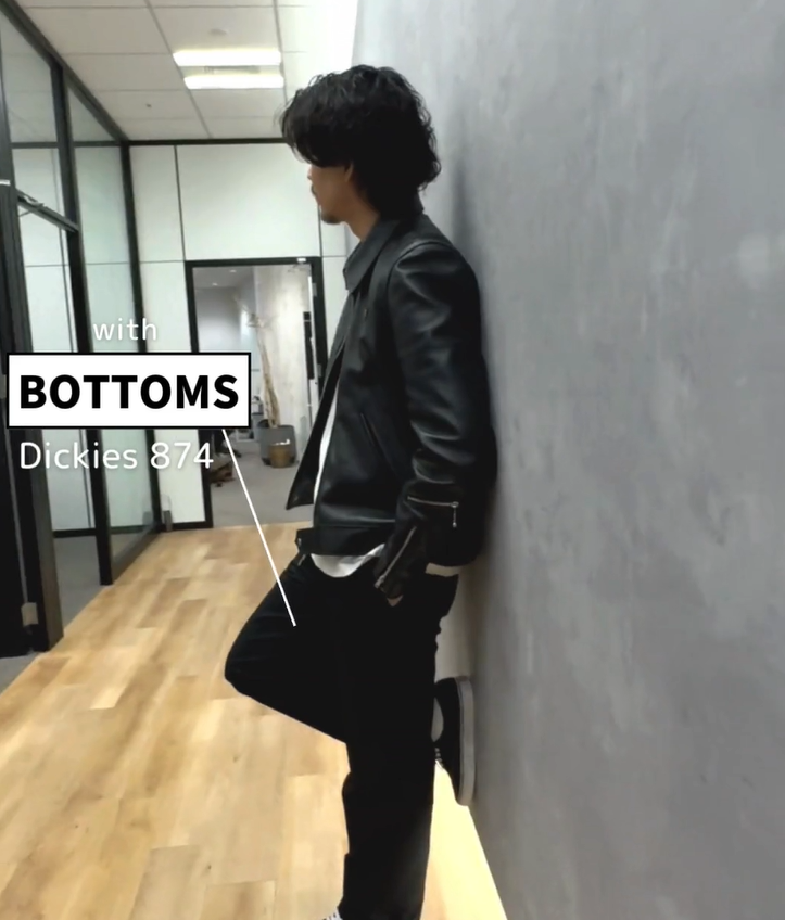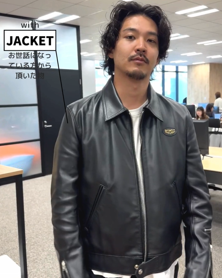カジュアルなコーデにアクセントとして革ジャンをプラス!